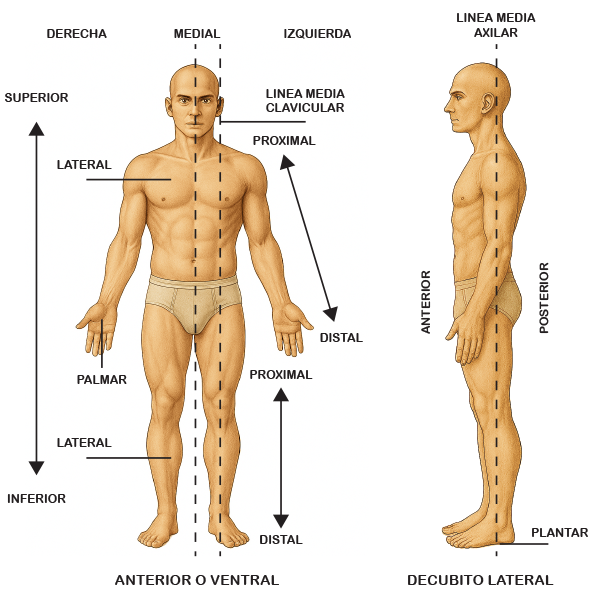 Esta posición es crucial porque evita confusiones al describir direcciones o relaciones espaciales entre partes del cuerpo (Figura 01).